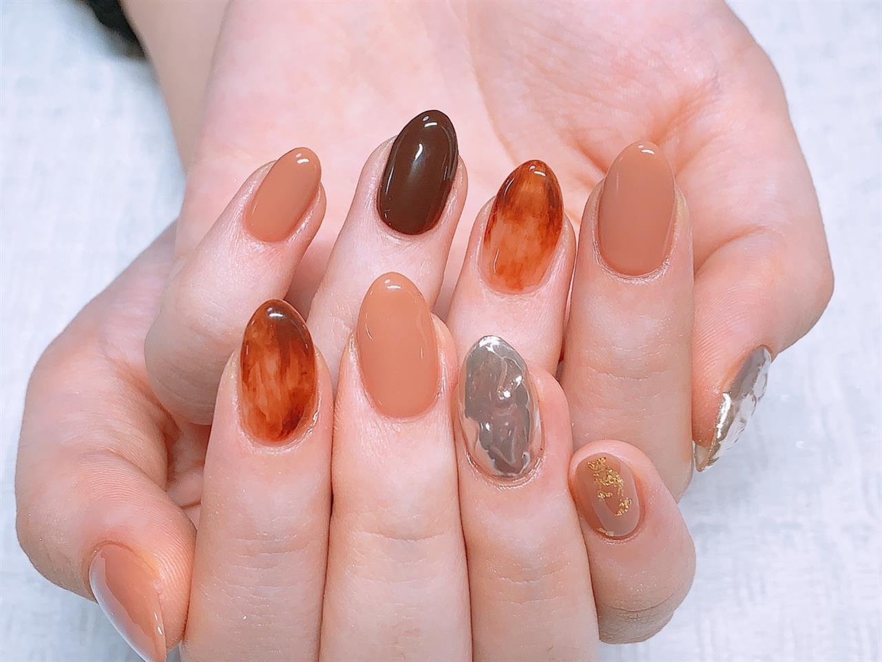 今回はアシメでおしゃれに(*´ω`*)秋ネイルですね♪