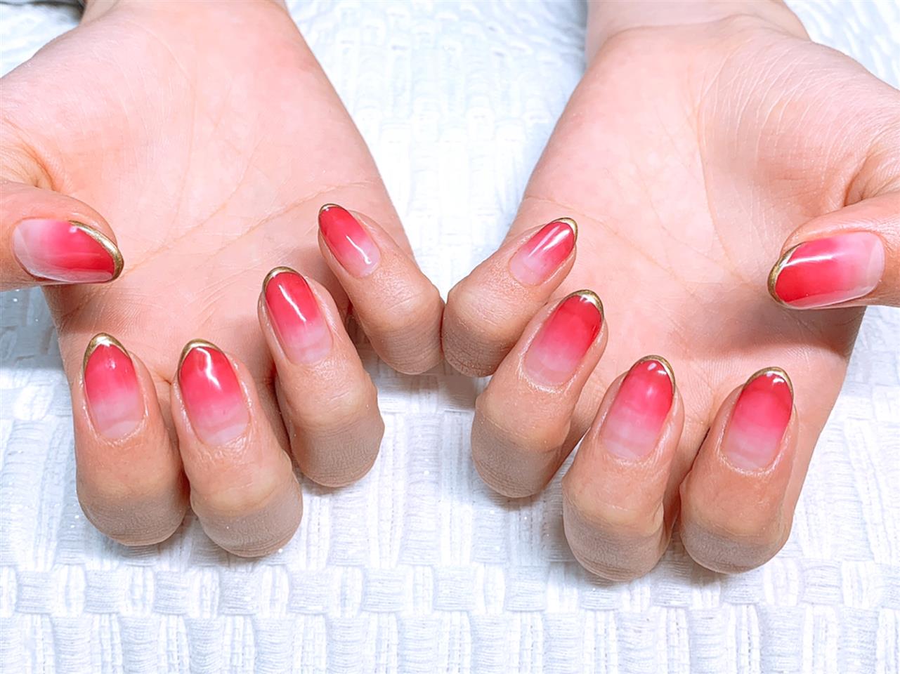 持ち込みデザイン☆赤グラデーション×メタリックライン