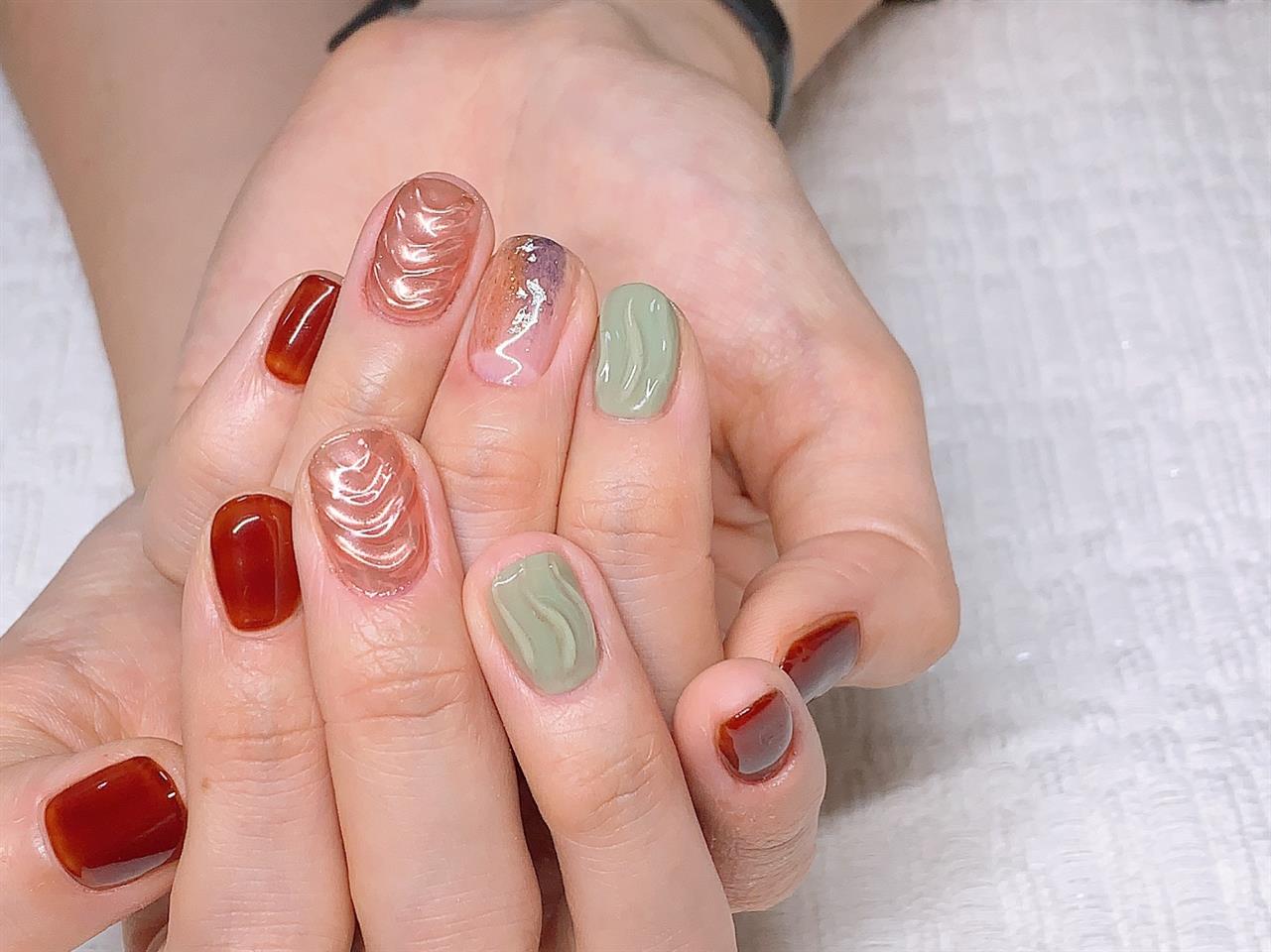 ピスタチオとミラーとファーを♪好きな物を詰め込みネイル♪
