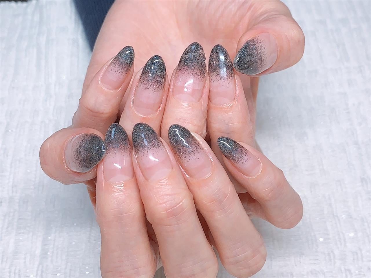 自爪ロング♪ブラックラメグラ、ブラックでも少し優しいカラーで