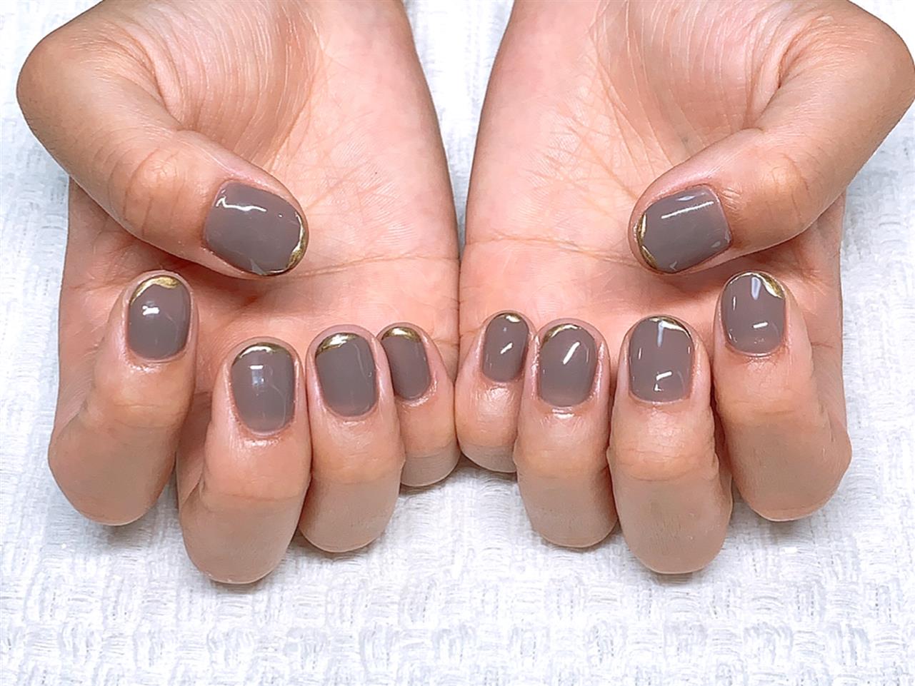 グレージュワンカラー♪先端にメタリックゴールドのラインを(^^)